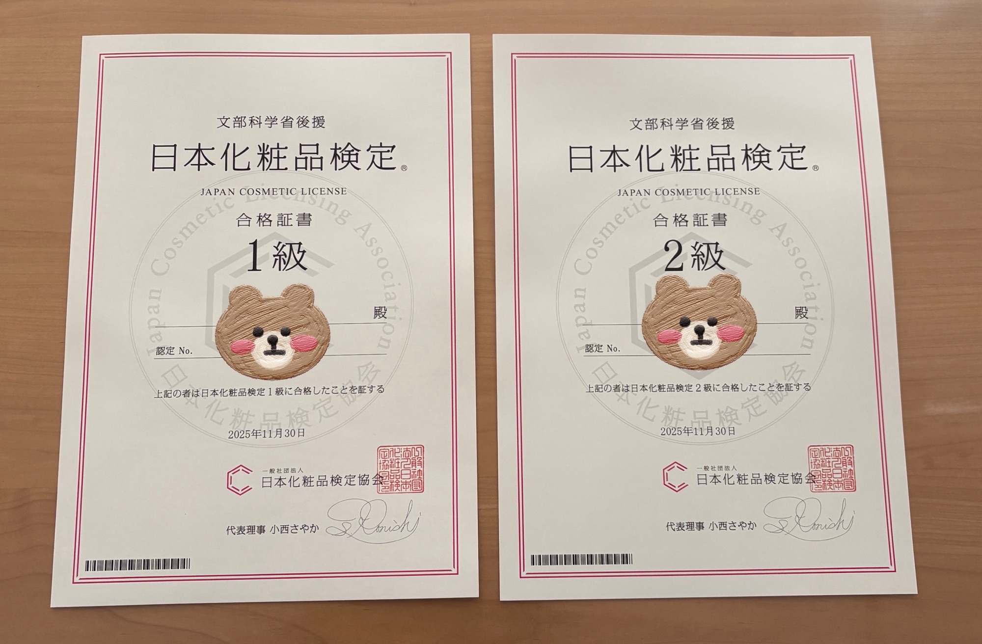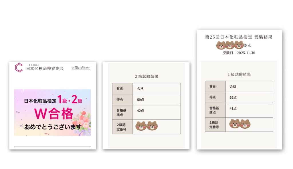 化粧品検定1級・2級。